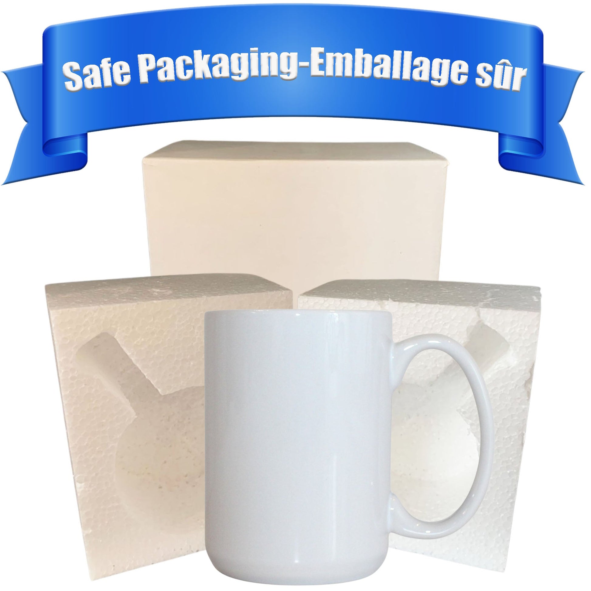 15 oz White Sublimation Mugs with AAA Coating - | Full-Color Printing | Reinforced Styrofoam Packaging"