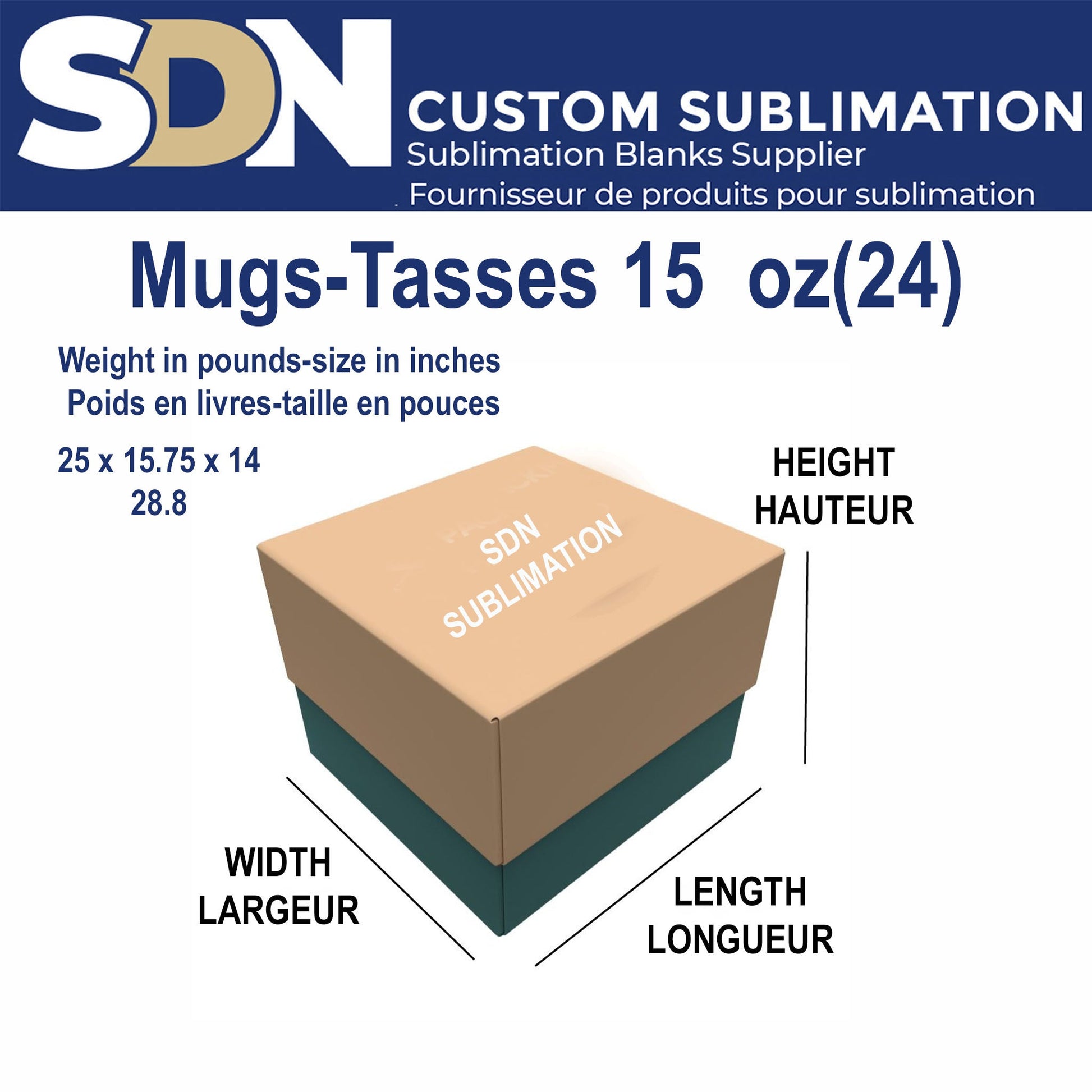24 Pack -15 once black mugs with white strip with reinforced foam box packaging