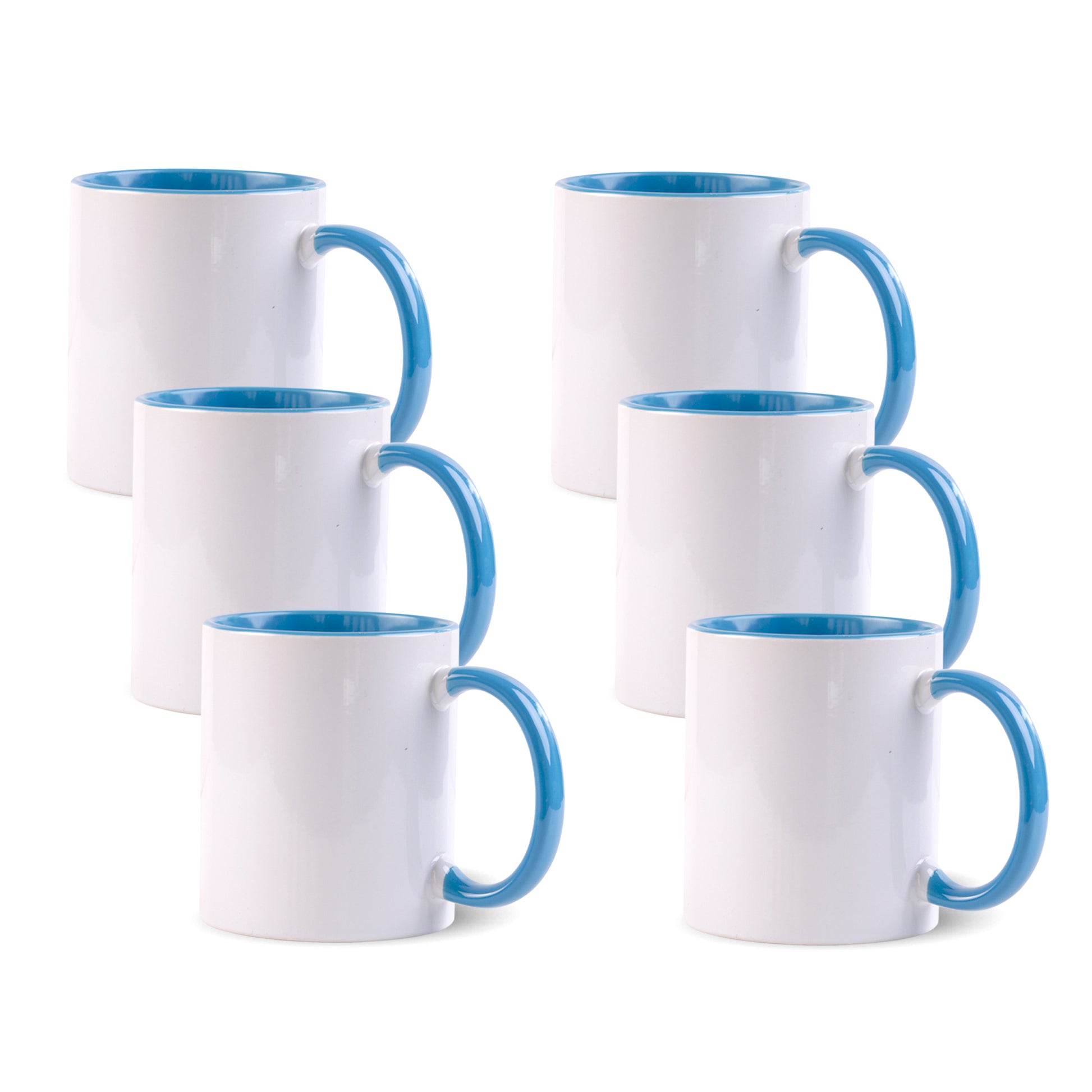 6 Pack-11 once White sublimation mugs inner color BLUE and handle with reinforced foam box packaging