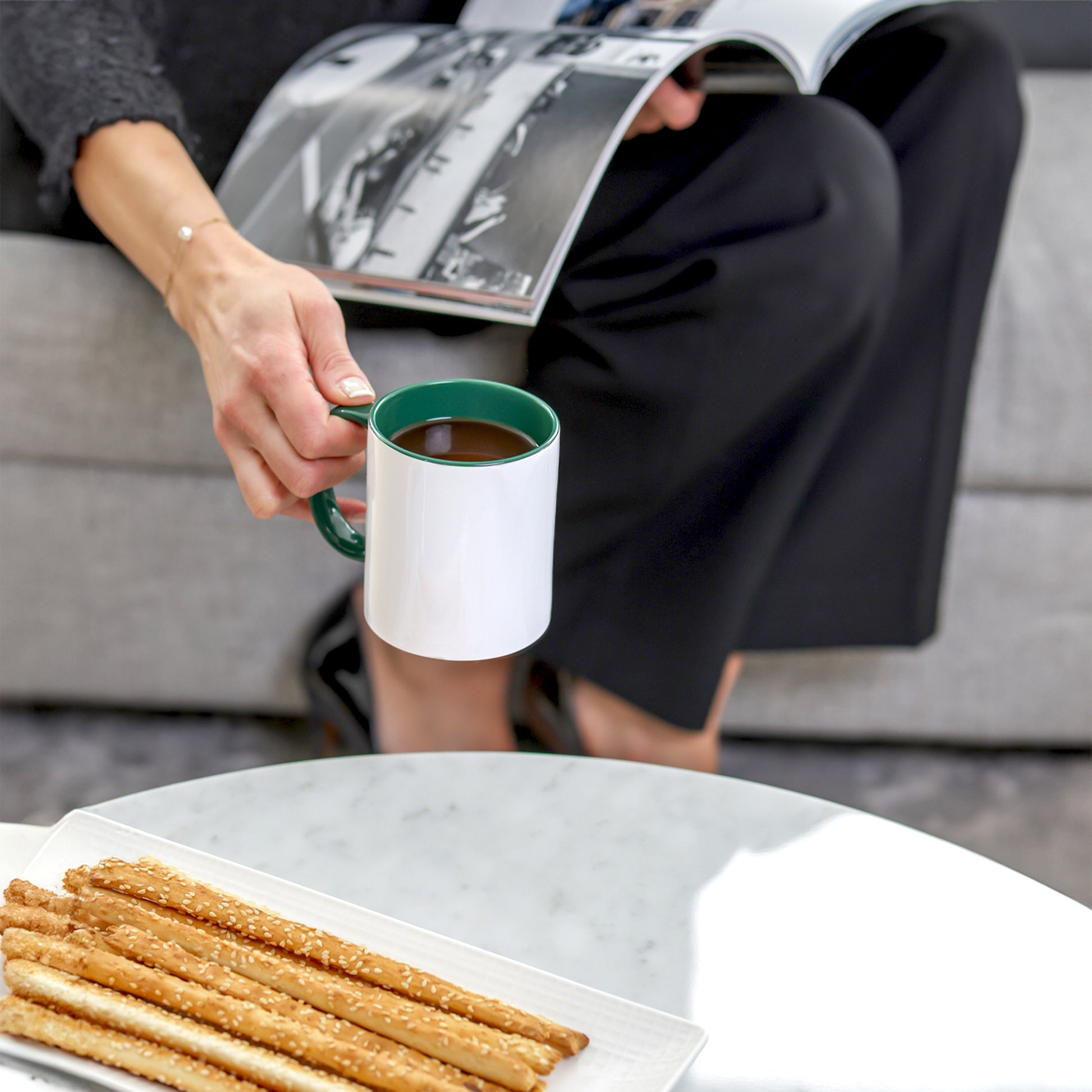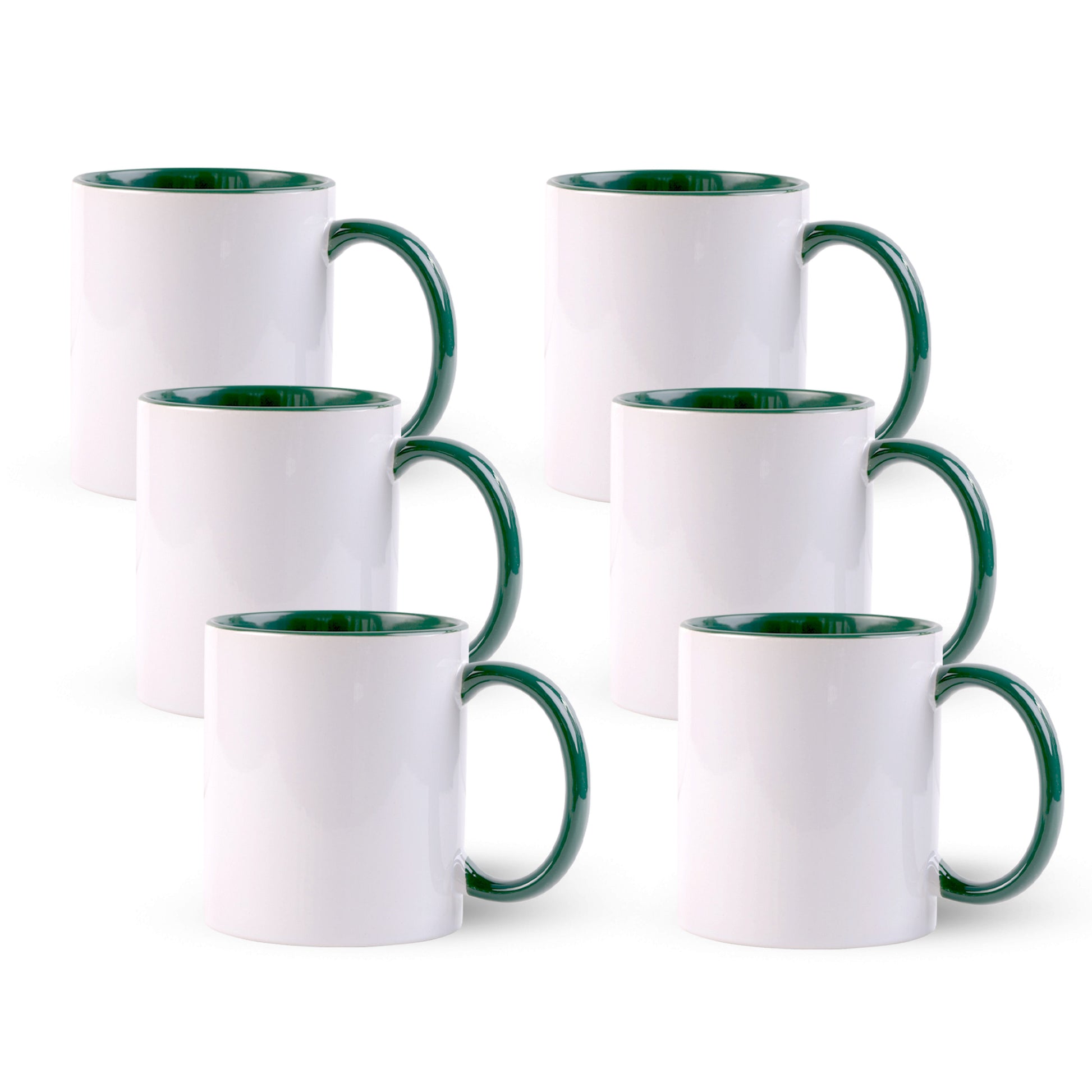 6 Pack-11 once White sublimation mugs inner color GREEN and handle with reinforced foam box packaging