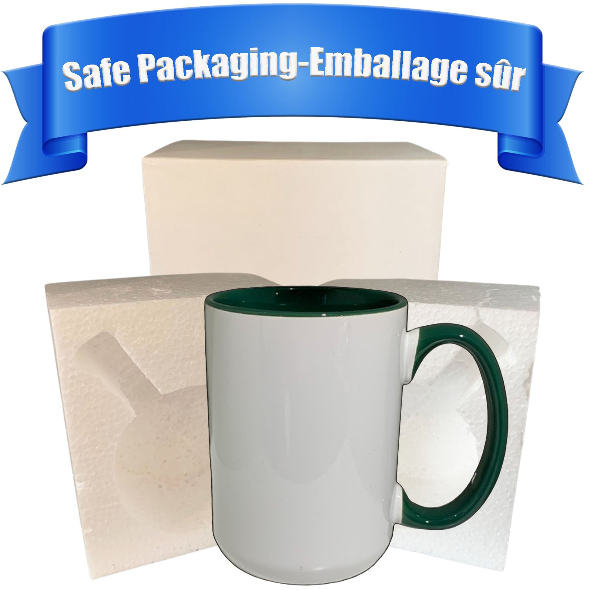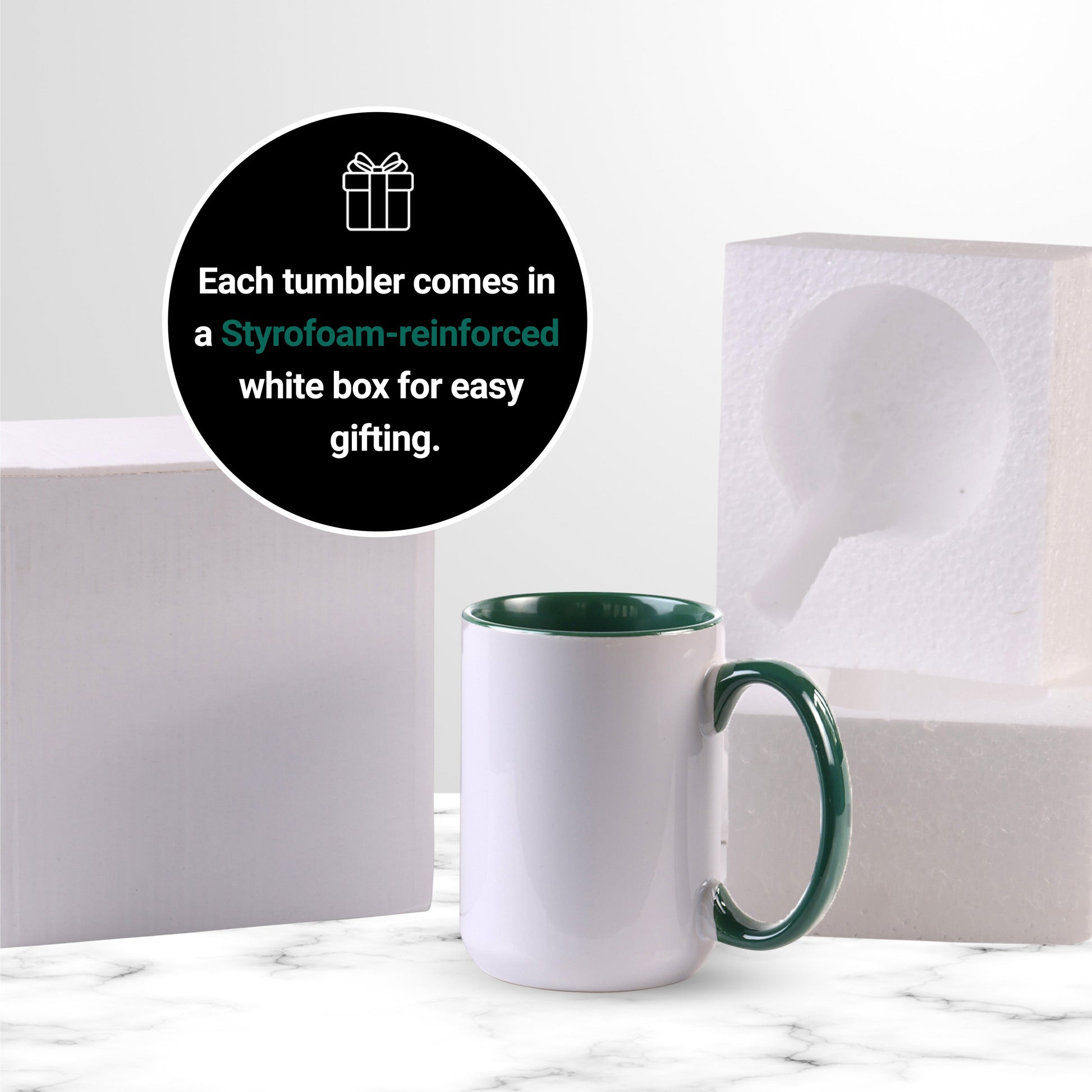 6 Pack-15 once White sublimation mugs inner color GREEN and handle with reinforced foam box packaging