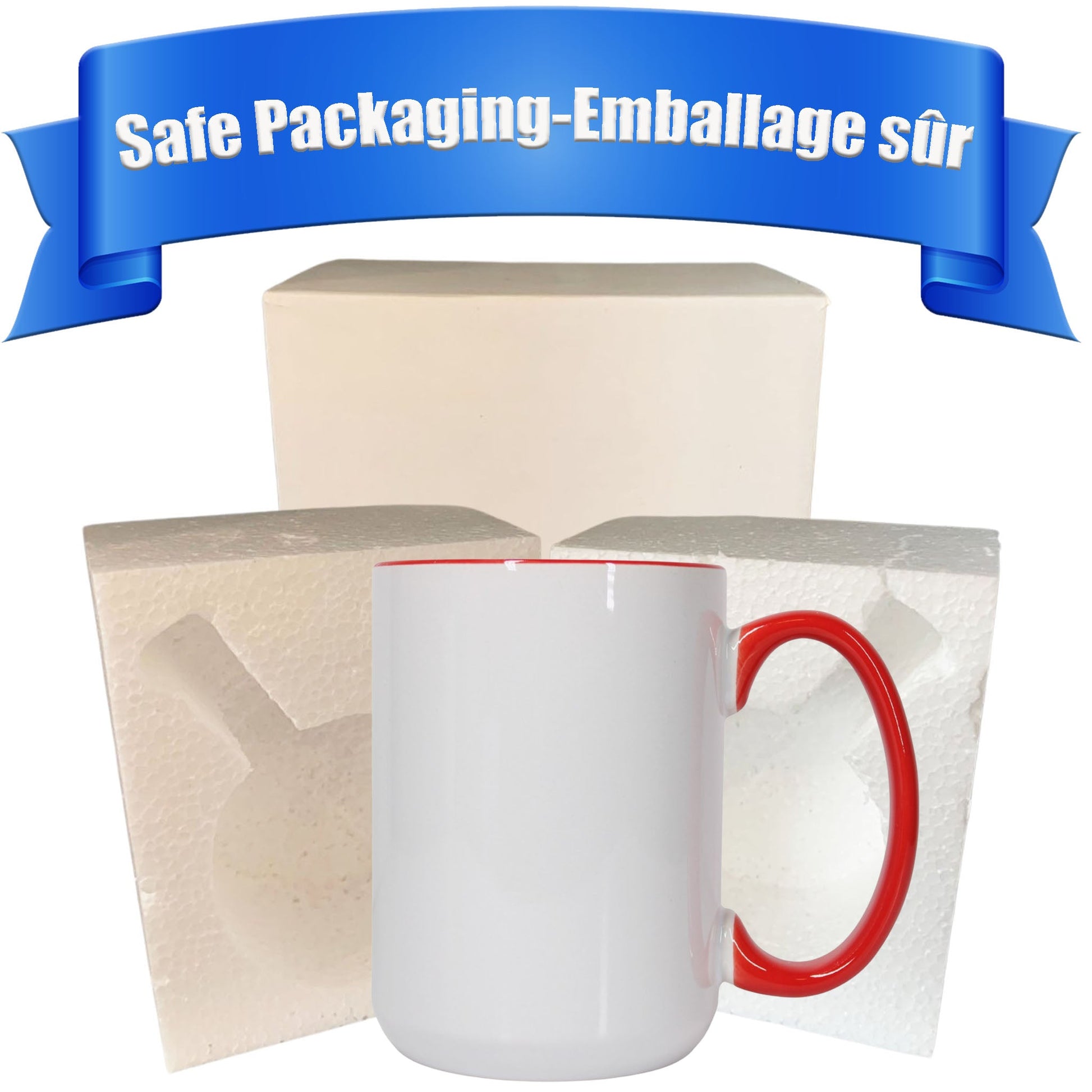 15 once White sublimation mugs inner color RED and handle with reinforced foam box packaging