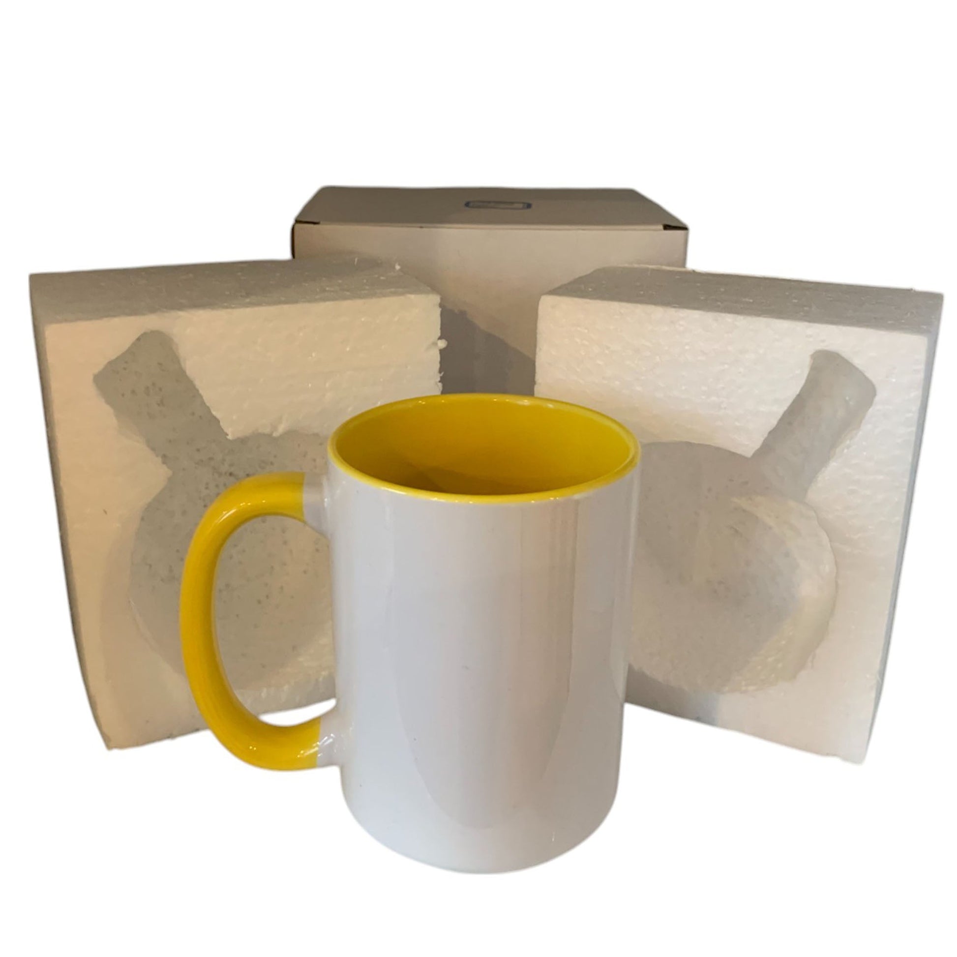 6 Pack-15 once White sublimation mugs inner color YELLOW and handle with reinforced foam box packaging