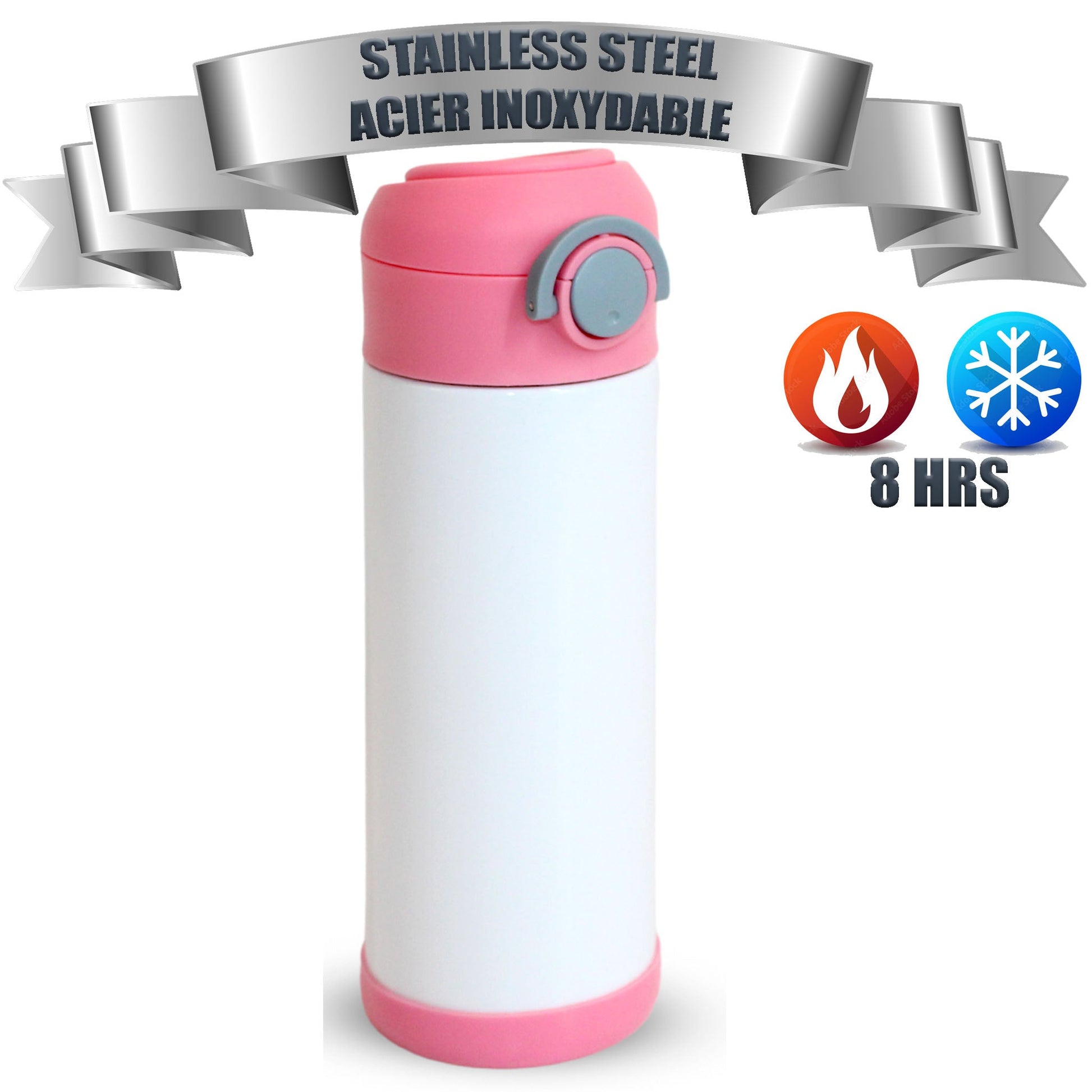 Kids Sublimation Water Bottle stainless steel, 350ml (12oz) pink Lid