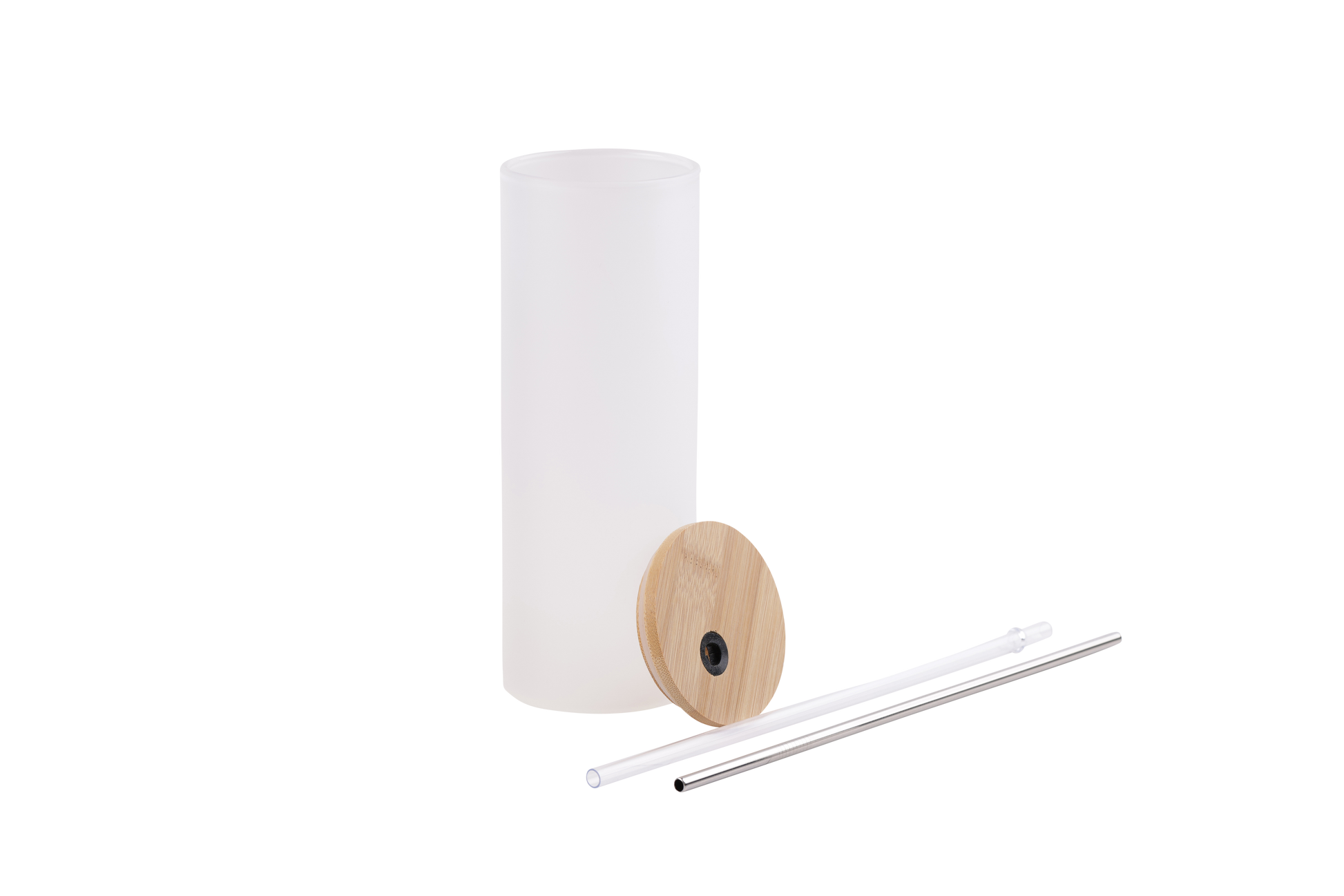 Sublimation Blanks Glass Tumbler Skinny Straight Frosted 25 OZ with Bamboo Lid and Plastic Straw-metal sraw and brush(Reinforced packaging)